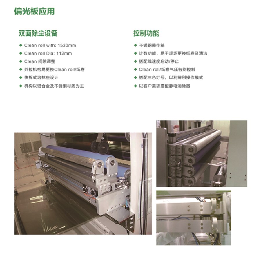 苏州艾特隆精密科技有限公司,是一家集研发、设计、制造、售后服务为一体的清洁、除静电设备企业。公司专注于清洁、除静电设备的研发生产,为LCD,BLU,LGP,光学膜片,PCB,FPC及触摸屏自动化生产提拱个性化的解决方案。目前重要的产品是为接触式清洁机、静电消除器、高分子滚轮、免刀集尘纸卷等